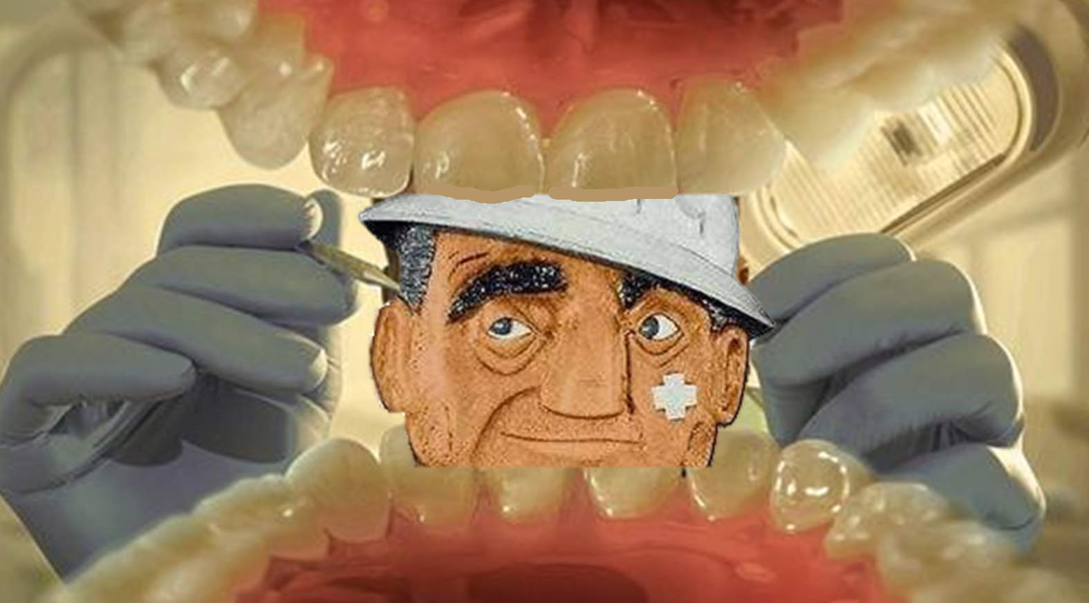 He put on his mask and gloves, tilted my chair.  Once I recovered from the whiplash, he took his pick attacked my gums like he was fracking a well.  With every muscular jab, my head rebounded.  I gagged when his big thick hands reached back for my molars.