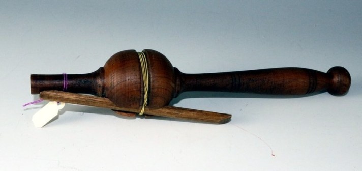 It was about 6 inches long – a spindly piece of oak – a short knobby table leg. Attached to it, with a thick rubber band, was another piece of oak – a slender dowel rod. Depress and then quickly release the dowel rod and a loud resonant click is produced.