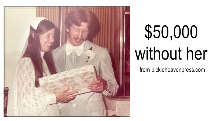 So, I have an insurance decision to make. We have a policy on my wife so that when she transitions to heaven, the company will send me a check for $50,000.