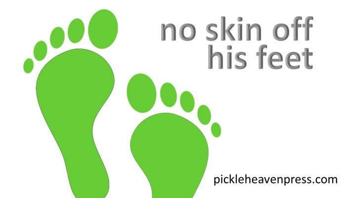 Pleased with his new economical creation, he began to strum his guitar.  Unfortunately, his organic guitar pick, quickly disintegrated into a puff.  The skin of his foot turned to dust in his hands.